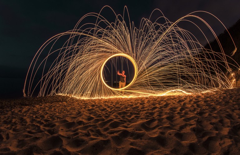 Nella foto: spettacolo di lana d'acciaio di notte presso la spiaggia di Platamona (Sassari - Sorso, golfo dell'Asinara, Costa Nord-Ovest Sardegna).